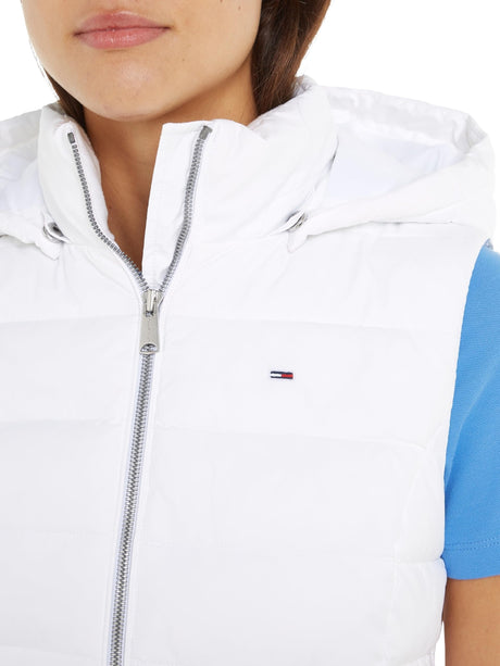 Tommy Jeans Chaleco Mujer Basic Hooded Vest con Capucha, Blanco (White), L