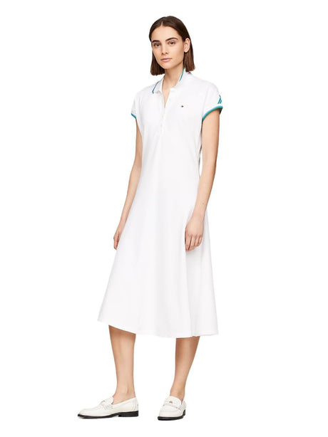 Tommy Hilfiger Vestido Tipo polo Hasta la Rodilla para Mujer, Blanco (Th Optic White), M