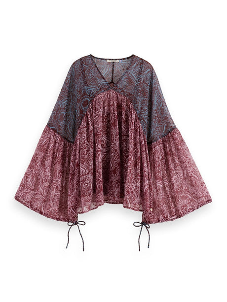 Scotch & Soda Printed Fil Coupe Top Camiseta, Blue Mountain Paisley Mix, 44 Mujeres
