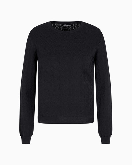 Armani Exchange Allover Monogram Logo Longsleeve Knit Top Suéter, Negro, M para Mujer