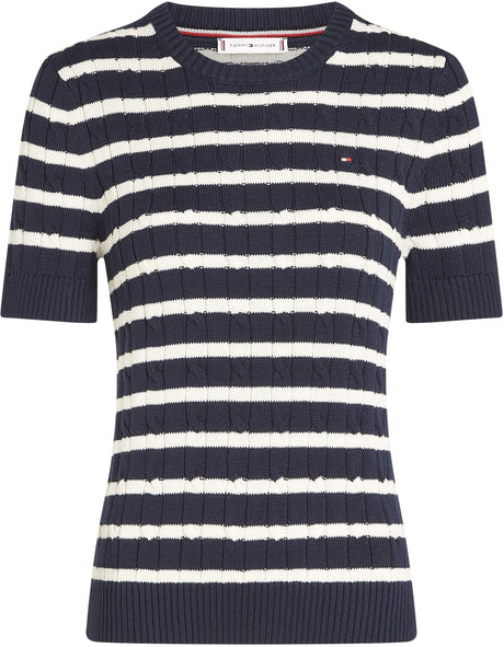 Tommy Hilfiger Jersey de Punto para Mujer, Multicolor (Dark Night Navy/Ivory Petal STP), L