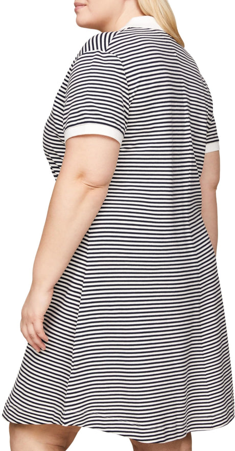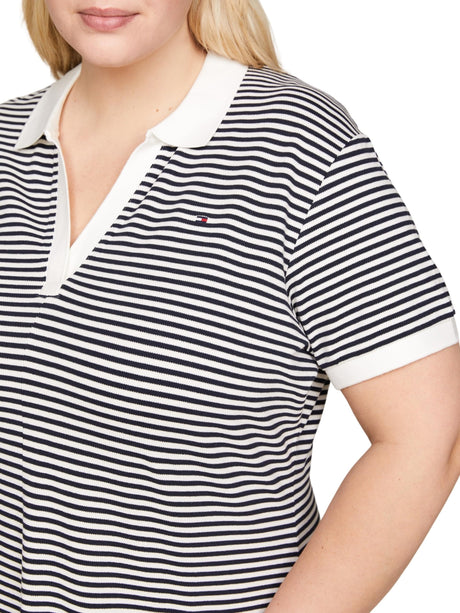 Tommy Hilfiger Vestido tipo polo Mujer Curve de manga corta, Multicolor (Breton Ecru/Desert Sky), 48