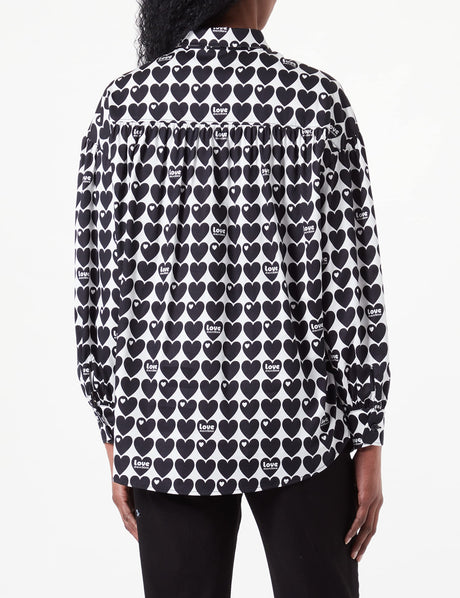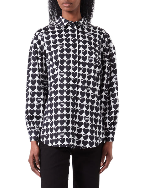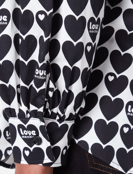 Love Moschino Camiseta con Mangas largas Acolchadas, Blanco y Negro, 42 para Mujer