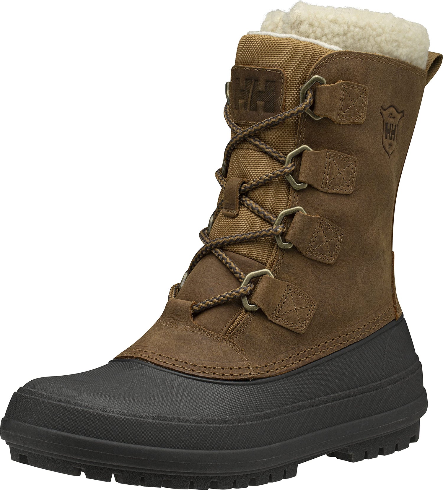 • Las botas de invierno Varanger tienen buen aspecto mientras vencen a la nieve Tienen la clásica silueta de bota de pato con una parte inferior de caucho vulcanizado que protege de la intemperie y una parte superior de piel impermeable de calidad Hemos ado la parte inferior con nuestra tecnología de protección de aluminio HH FreezeBlock para mantener los pies secos y calientes La suela tiene nuestra tecnología de tracción para ayudar a prevenir el deslizamiento en superficies heladas En el interior, la bota tiene un cálido calcetín aislante Primaloft con ribete de imitación de piel de oveja Las botas de invierno Varanger tienen una clasificación térmica de 30-40°C/-22/-40°F
