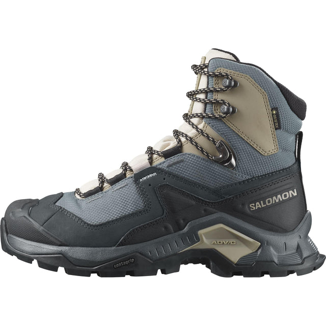 Si vas a enfrentarte a lugares agrestes y caminos desconocidos; necesitas un calzado para excursionismo diseñado para aventuras; con piel de nobuk de gama alta; protección GORE-TEX y un corte alto; la QUEST ELEMENT GTX para mujer te protege de los obstáculos y elementos; además su ligera construcción y chasis estabilizador te mantienen ágil en cada paso