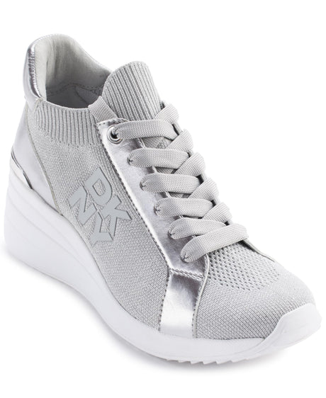 DKNY Kasia-Lace Up Wedge, Zapatillas Mujer, Gris Plateado, 40.5 EU