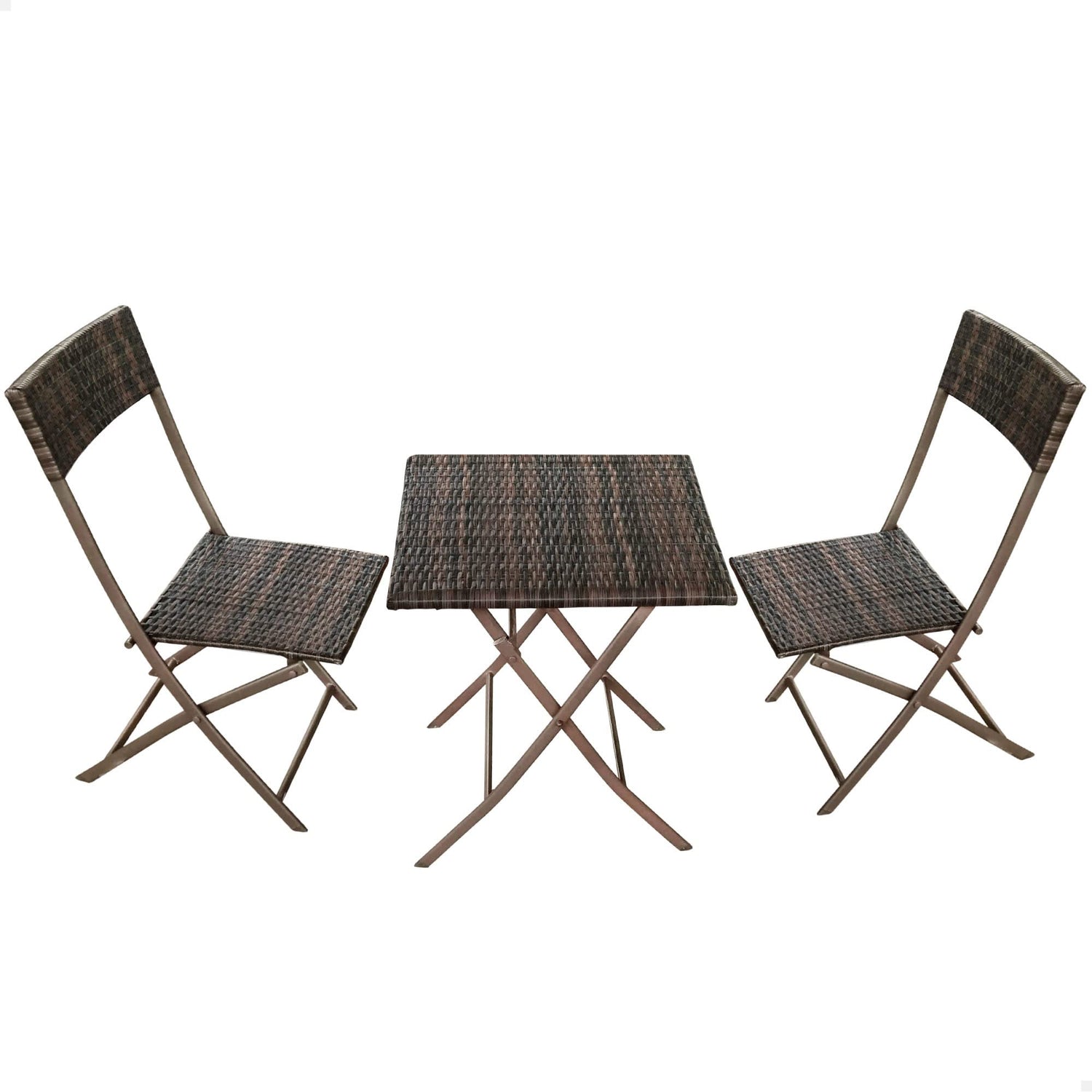 - Piezas: dos sillas con respaldo y una mesa central plegables