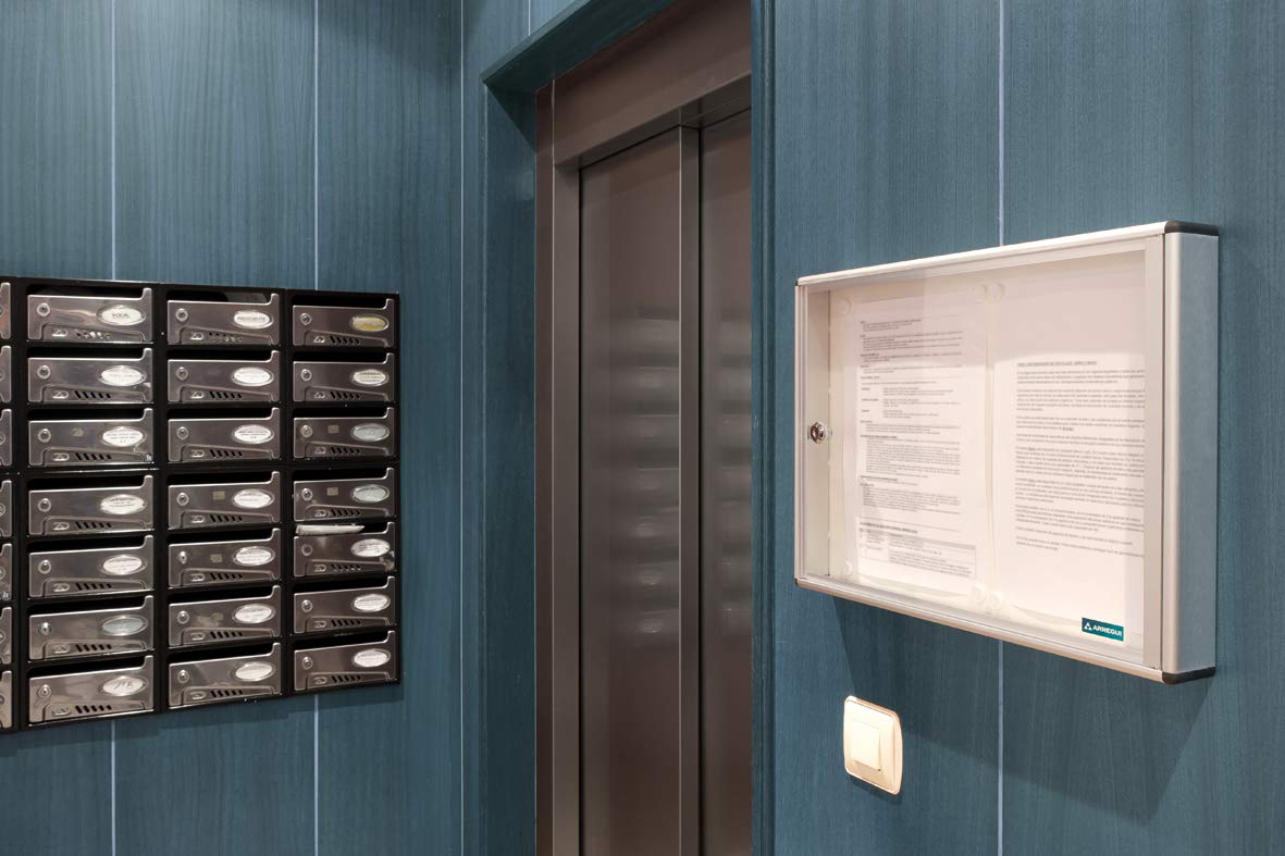 - Panel de anuncios para colocar en portales, entradas y pasillos de edificios comunes, etc.