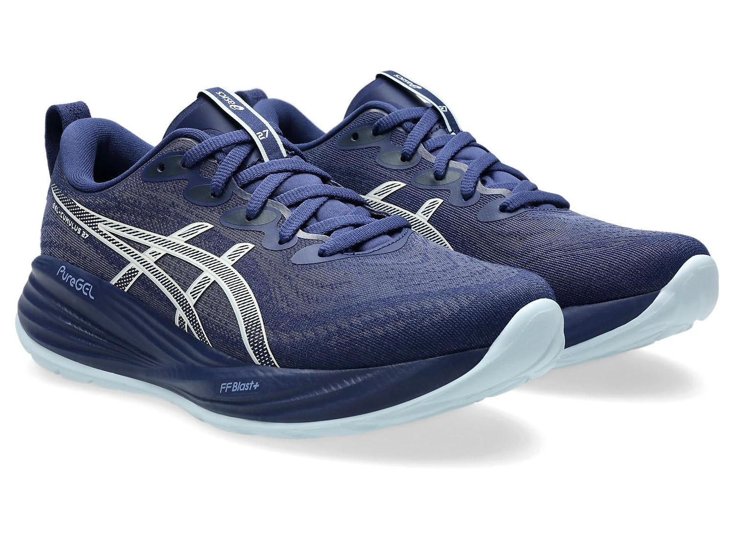 El GEL-CUMULUS es una excelente opción para quienes desean un zapato con amortiguación adicional. Es nuestro modelo GEL-CUMULUS más ligero y acolchado hasta la fecha, tan cómodo que te sentirás perfectamente a gusto durante tu carrera. La tecnología PureGEL aumenta la suavidad y la absorción de impactos para reducir el impacto en las articulaciones. Rediseñamos la entresuela combinando nuestra espuma FF BLAST PLUS con una suela FLUIDRIDE para brindarte una comodidad óptima mientras corres.