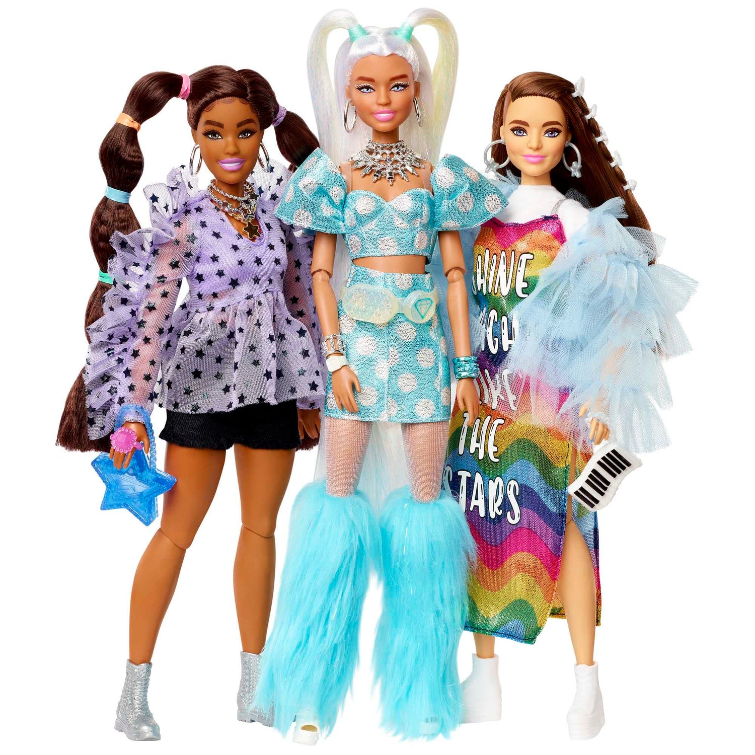 - Las muñecas Barbie Extra destacan por sus estilos únicos y prendas atrevidas, como coloridos tops estampados, accesorios forrados de pelo, montones de collares y mucho más.