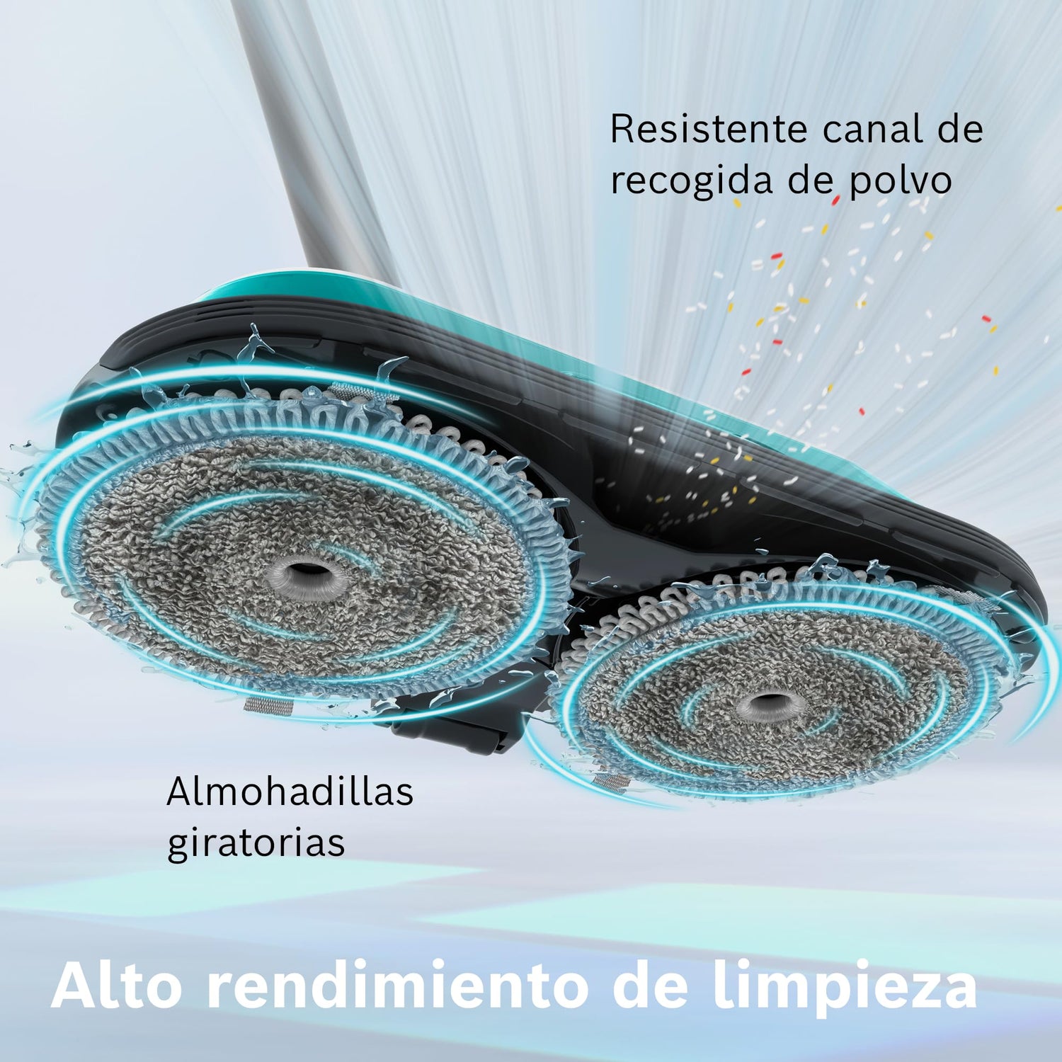 - Aspirador híbrido: el cepillo 2en1 DynamicAqua combina una fuerte aspiración con dos almohadillas giratorias de gran potencia, para eliminar eficazmente el polvo, la suciedad y las manchas más difíciles