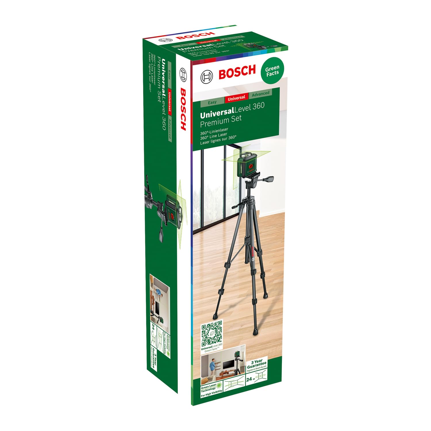 Bosch Home and Garden nivel láser de líneas cruzadas UniversalLevel 360 con trípode prémium + pinza universal MM 3(líneas en vertical horizontal,incl. 360° para alineación por toda estancia)