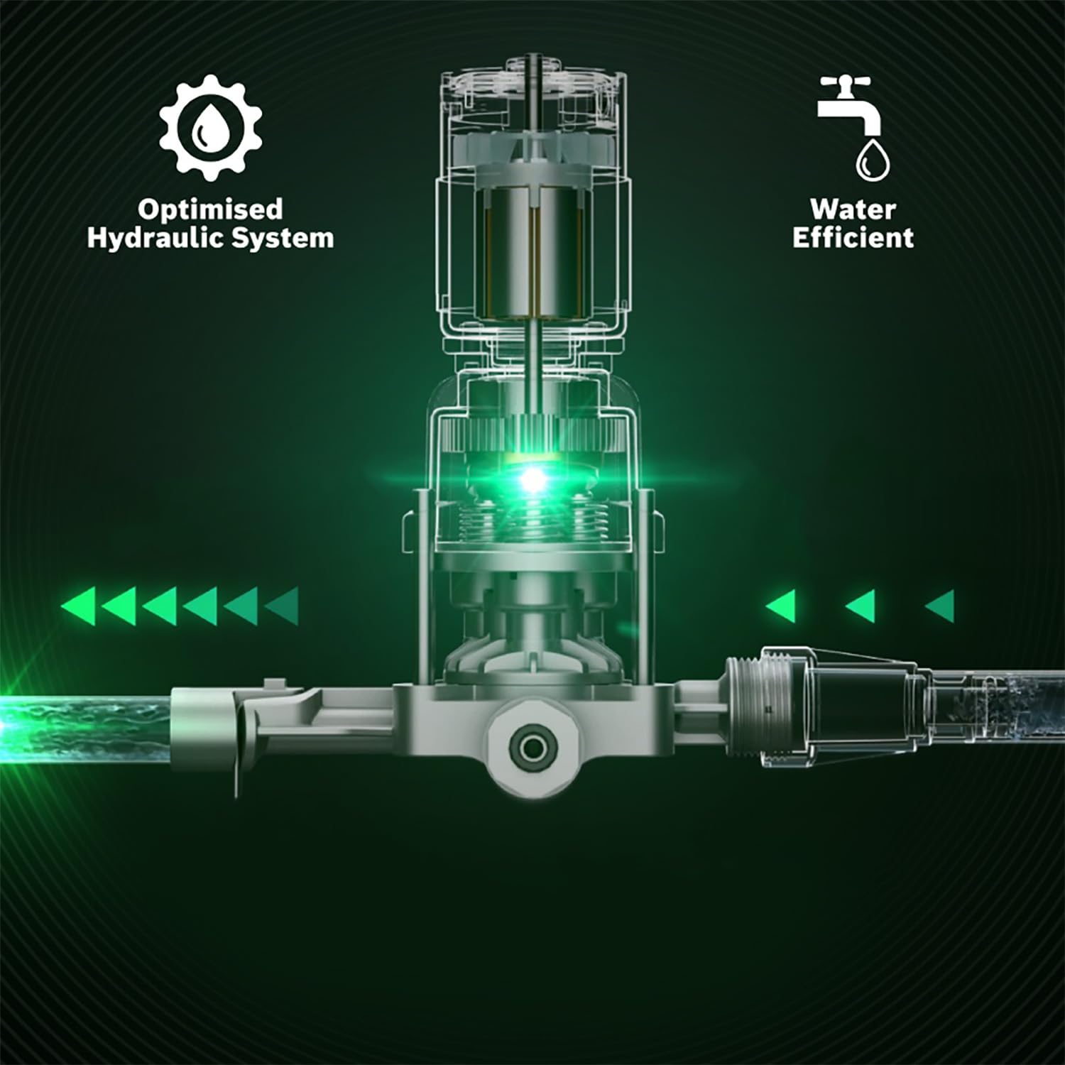 - Gran rendimiento en la limpieza de alta presión con un uso eficiente del agua
