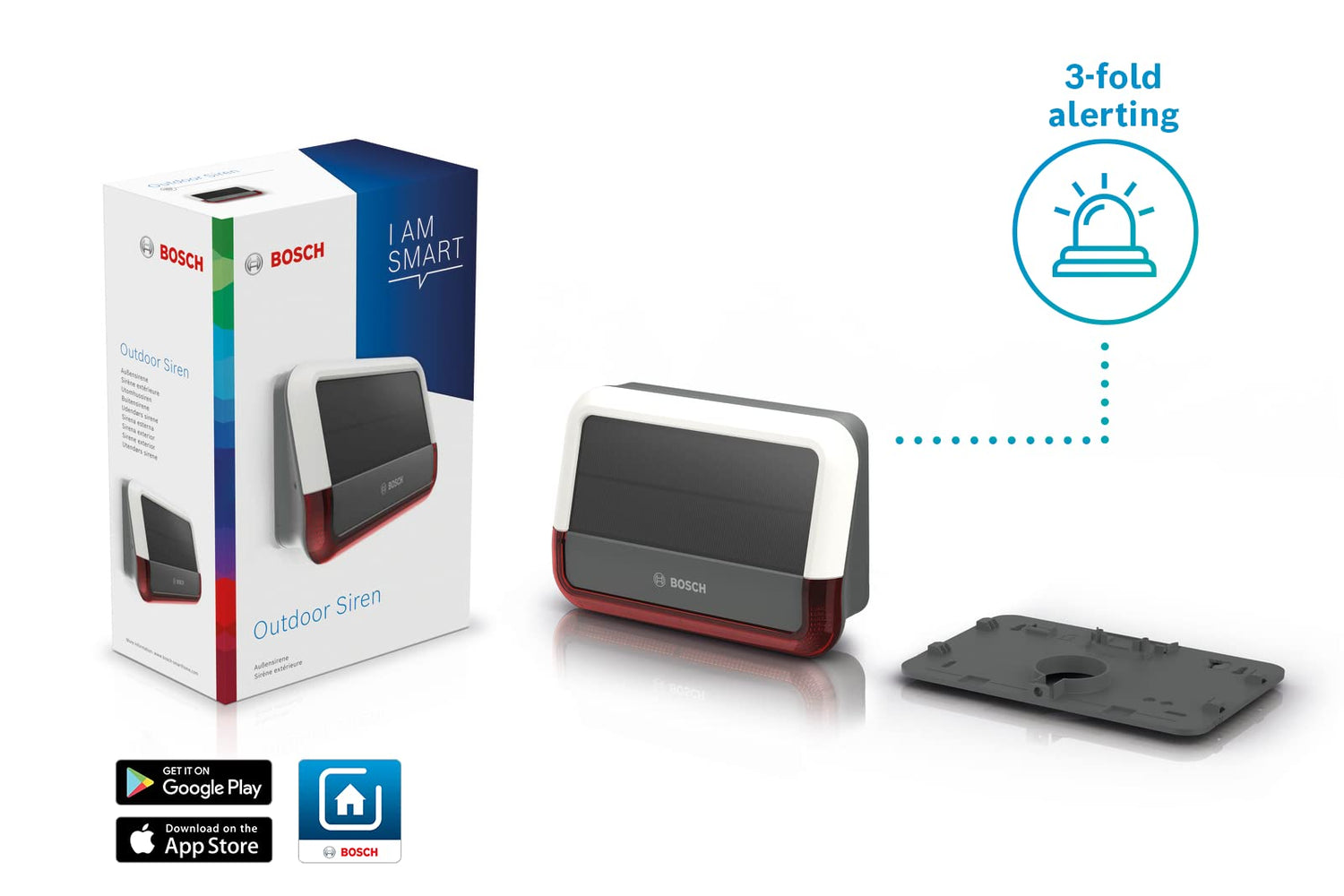 Bosch Smart Home Sirena Exterior, un Sistema de Alarma inalámbrico con Panel Solar, le avisará Mediante notificaciones, Blanco