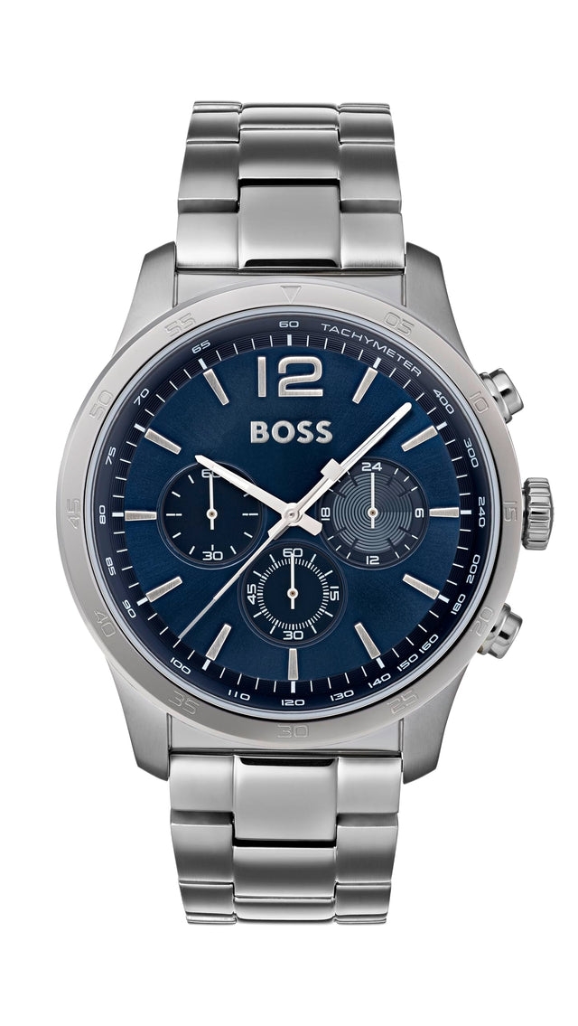 BOSS Reloj Cronógrafo de Cuarzo para Hombre de 44 mm Colección The Professional con Esfera Azul, Pulsera de Acero Inoxidable Plateado, 3 Subesferas, Resistencia al Agua 3ATM - 1513527