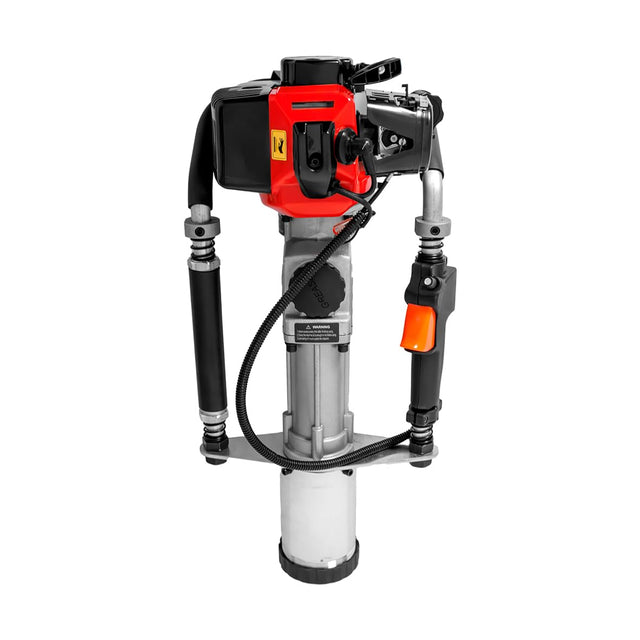 Clavador de postes a gasolina de alto rendimiento, equipado con motor de 2 tiempos de 33cc, ideal para trabajos intensivos al aire libre. Con 1.0Kw de potencia, 7000 rpm, energía de impacto de 30J y frecuencia de 3100 BPM, permite clavados rápidos y efectivos con el mínimo esfuerzo físico. Ligero, portátil y versátil, incluye tres adaptadores (45mm, 55mm y 88mm), además de un conjunto completo de accesorios: maletín de transporte, kit de reparación, bidón de mezcla y embudo, listo para su uso inmediato en cualquier escenario.