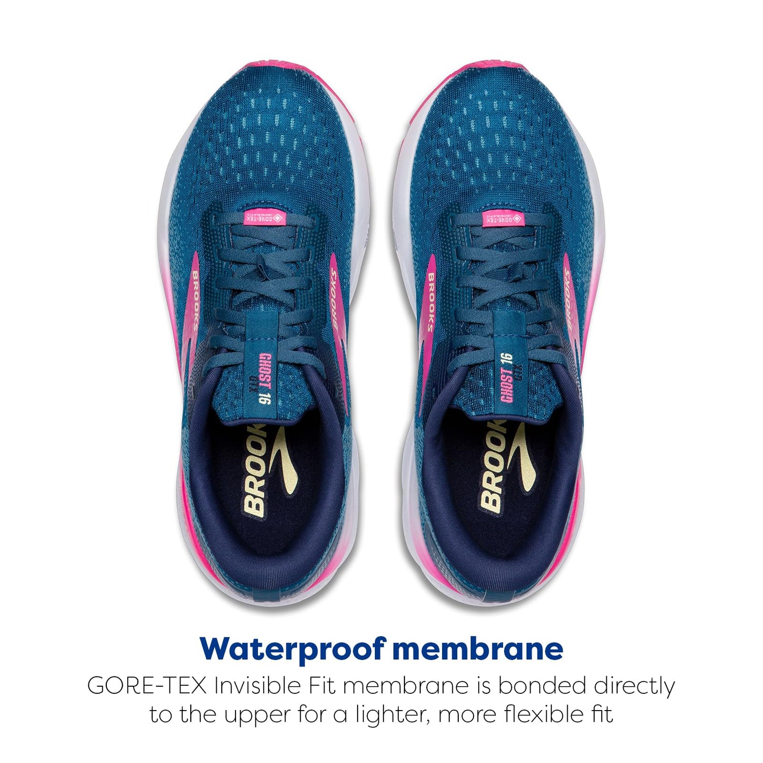 BROOKS Ghost 16 GTX, Sneaker Mujer, Azul marroquí/Rosa/Amarillo, 37.5 EU