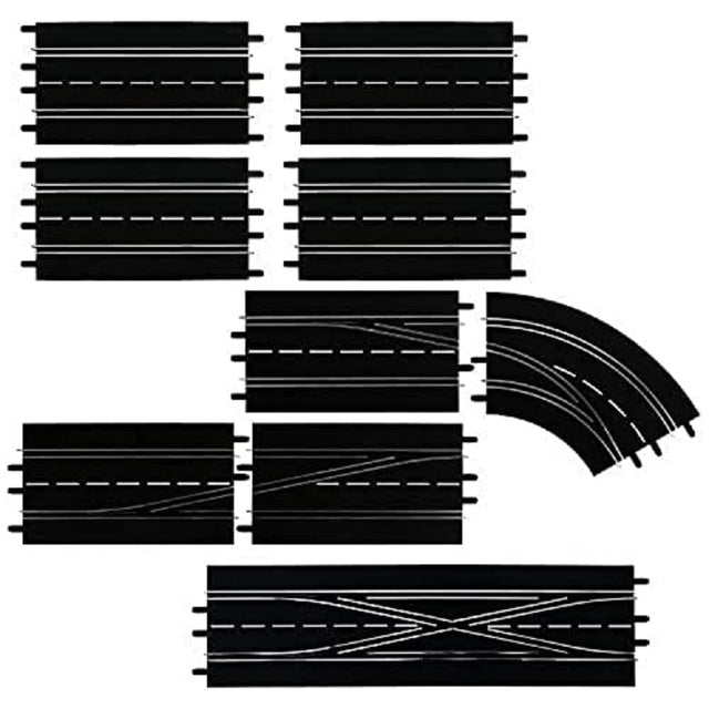 - Contenido del paquete: 4 rectas estándar 1 desvío (izquierda) 1 desvío doble 1 curva de cambio de carril (derecha del exterior al interior)
