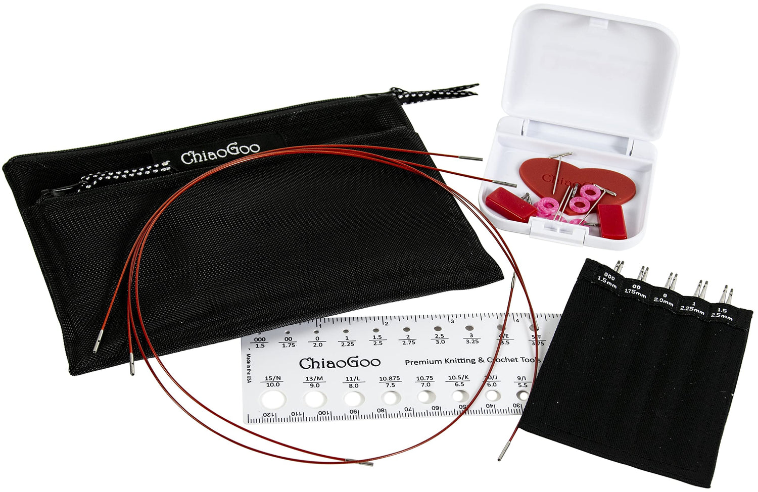 Detalles: El kit de aguja circular intercambiable de encaje giratorio de Chiaogoo incluye todo lo que pueda necesitar para crear la aguja circular perfecta para su proyecto de tejido: puntas de agujas en varios tamaños, cables en diferentes longitudes y todos los demás accesorios esenciales. Las agujas de acero inoxidable son muy puntiagudos (punta de encaje), lo que las hace adecuadas para patrones de tejido con múltiples puntadas, como patrones de encaje, puntadas de bocanada, burbujas y tejido de cable. Los cables extremadamente flexibles (y sin memoria) recubiertos con nylon rojo consisten en múltiples cables de acero, que evitan que el cable se torciera o se tuerza mientras se teje. Las puntas de las agujas se pueden unir, apretar o aflojarse fácilmente con la llave de apriete suministrada.