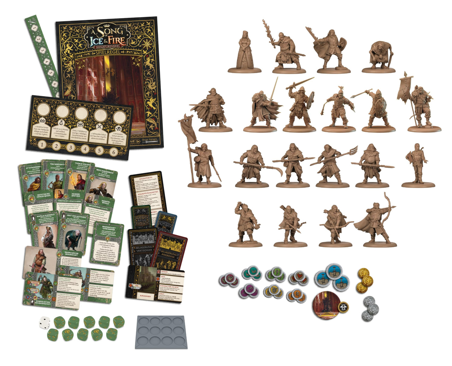 El juego de mesa A Song of Ice & Fire trae batallas épicas, intrigas políticas y personajes icónicos de George R. R. Martin exitosas novelas en la mesa de juego. Comandando a los pobres y héroes de las grandes casas de Poniente en varios modos de juego únicos en su batalla por el Trono de Hierro utilizando miniaturas detalladas y premontadas y tableros de movimiento.