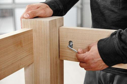 - Para el ensamblaje de bastidores y armazones (conector para juntas) y de tableros (conector para empalmes) que no solo destacan por su extraordinaria precisión y estabilidad, sino también por su máxima flexibilidad y una eficiencia única