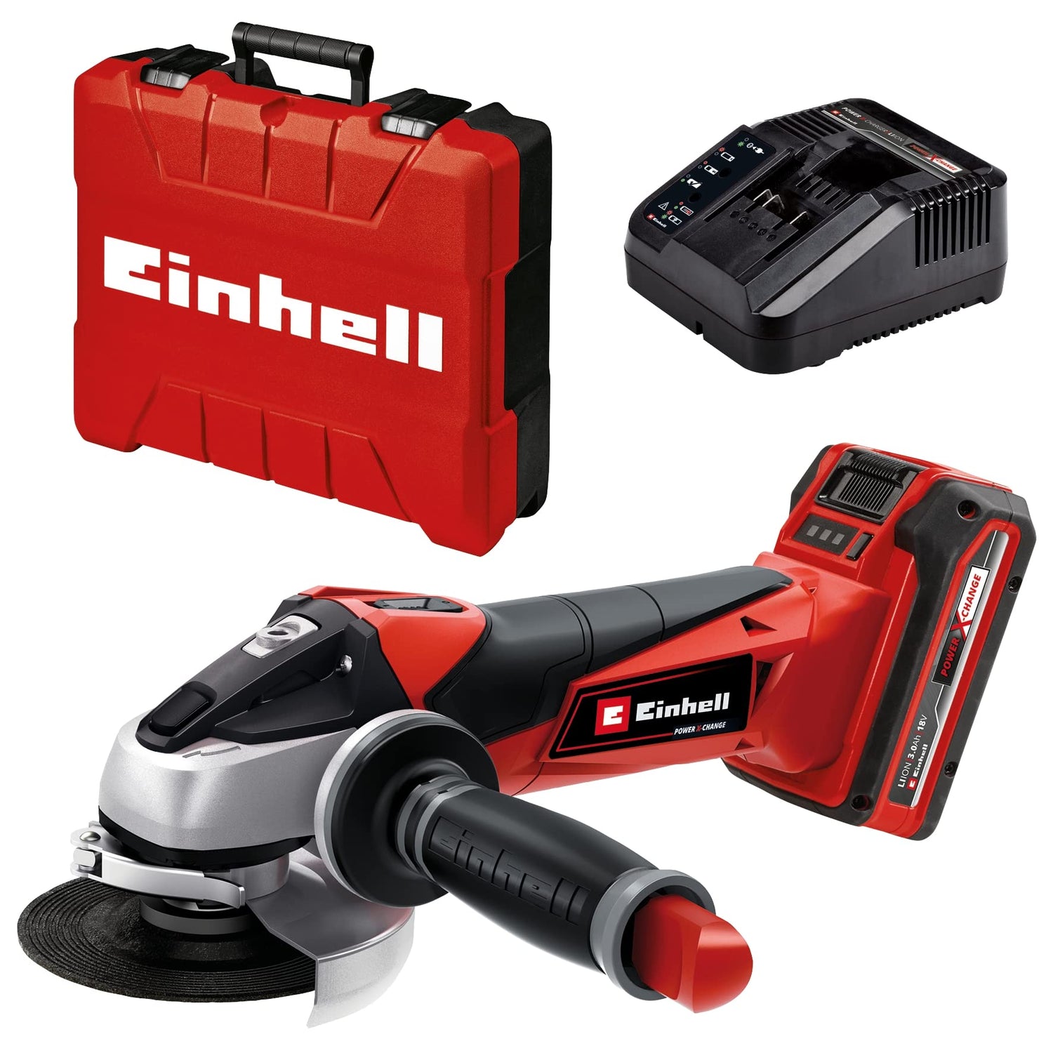 Einhell Amoladora angular con batería TE-AG 18/115 Li Kit Power X-Change (18 V, 115 mm diámetro de disco, 28 mm profundidad de corte, incl. 3,0 Ah batería y cargador), Rojo is backordered and will ship as soon as it is back in stock.