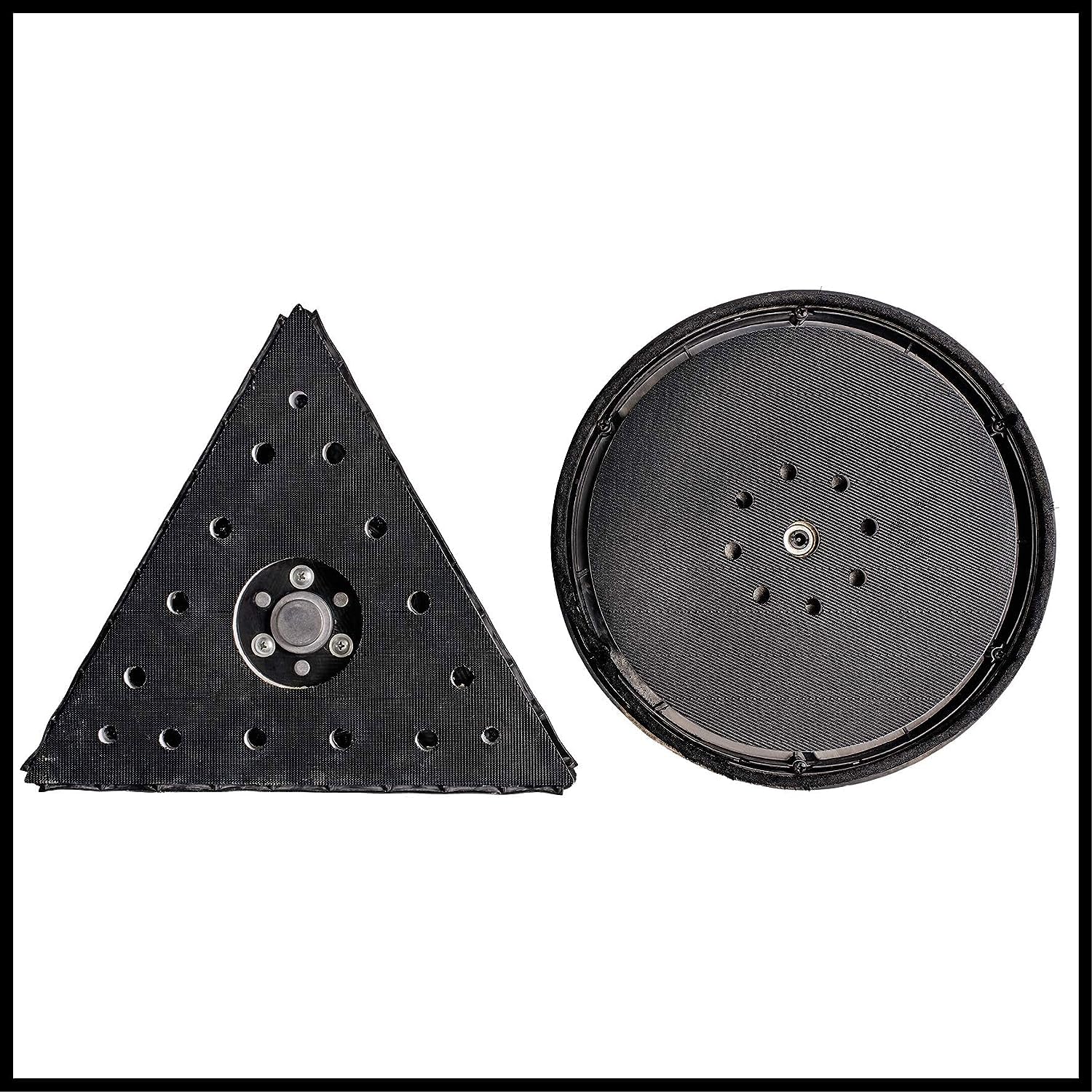 - Se entrega con 3 muelas abrasivas redondas de corindón de 225mm (1p60/1p80/1p120), así como 3 muelas abrasivas triangulares de corindón 285285285mm (1p60/1p80/1p120)