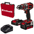 Einhell Taladro percutor con batería TE-CD 18/50 Li-i BL (2+4Ah) Power X-Change (18V, 50 Nm, motor sin escobillas, incl.1 batería de 2,0Ah y de 4,0 Ah y cargador rápido)