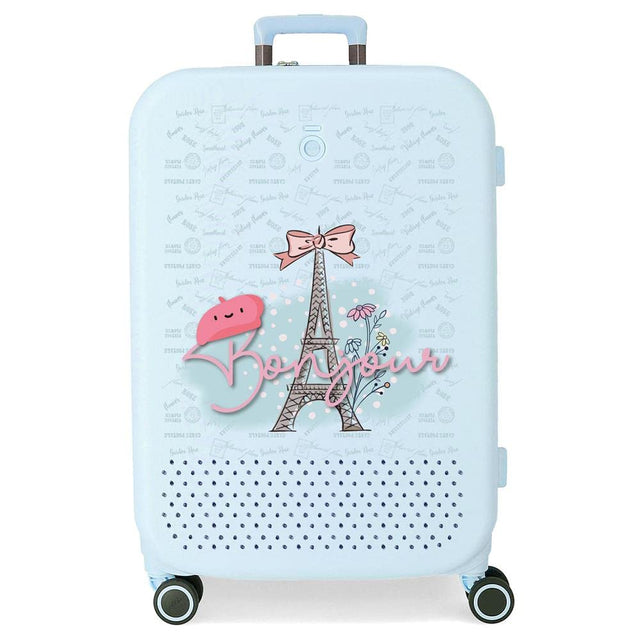 Bonjour Torre Eiffel! Qué preciosa es! En color coral o en turquesa, estas maletas y neceser rígido con la torre Eiffel como principal protagonista, serán tus imprescindibles para salir de viaje. Elige el tamaño de cabina o el tamaño mediano, cualquiera de las maletas que componen el set está perfectamente equipado con cuatro ruedas de giro multidireccional, bolsillos interiores con cremalleras y gomas de sujeción. Todas ellas con cierre TSA integrado. Elige el modelo extensible para hacer más grande tu maleta. Y para completar tu look, el neceser rígido se puede enganchar a la maleta gracias a la banda trasera que incorpora y llevarlo cómodamente. Ahora solo te falta elegir el destino, sea Paris o cualquier otro destino, ya sabes qué maletas llevar.