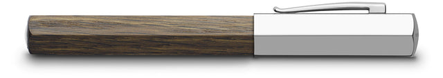 Faber-Castell Ondoro 147581- Pluma Estilográfica con Cuerpo en Madera de Roble Ahumado de Color Marrón - Forma Hexagonal - Plumín de Acero Inoxidable - Trazo F