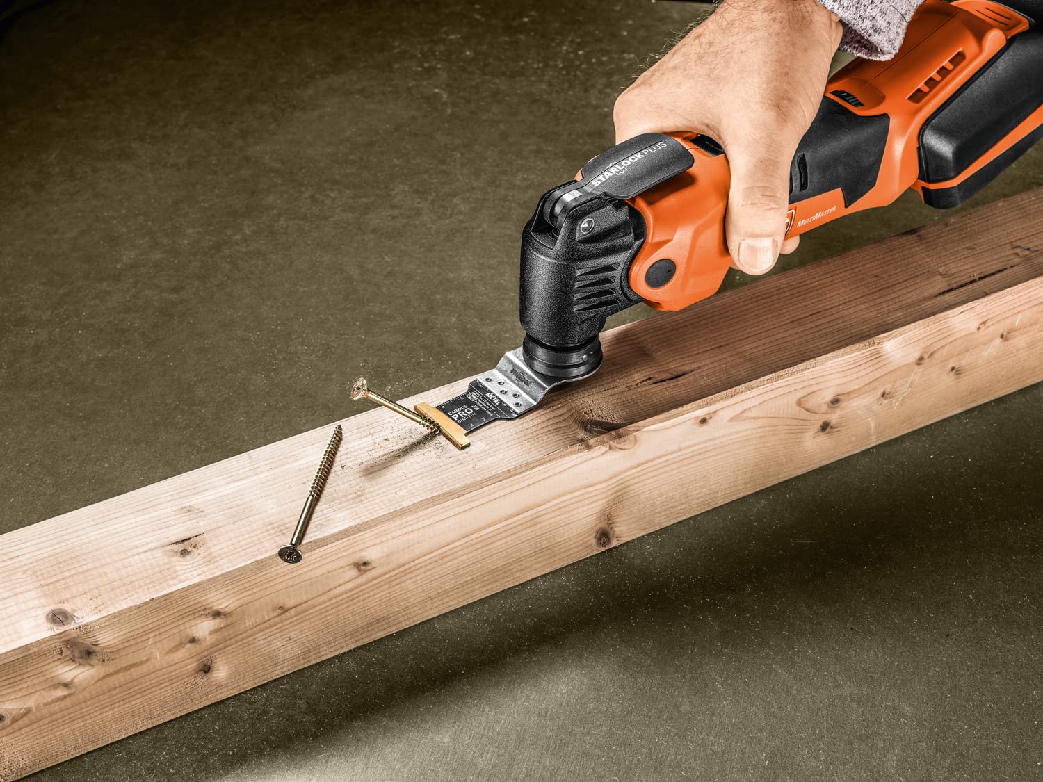 - APLICACIÓN Y EQUIPAMIENTO: Montaje Starlock para cortes precisos en madera, cartón yeso y materiales plásticos.Extremadamente robusta, también resistente a clavos en madera (hasta aprox. Ø 4 mm) y mampostería ligera.
