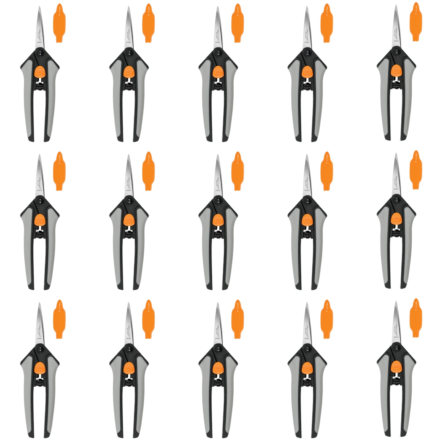Fiskars Juego de 15 tijeras de podar de micropuntas, cuchillas de acero inoxidable de precisión, asas de agarre suave para cortar y dar forma a plantas pequeñas