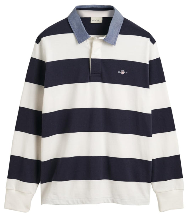 GANT Reg Chambray Stripe Heavy Rugger Camiseta, Fuente de Huevo, L Hombres