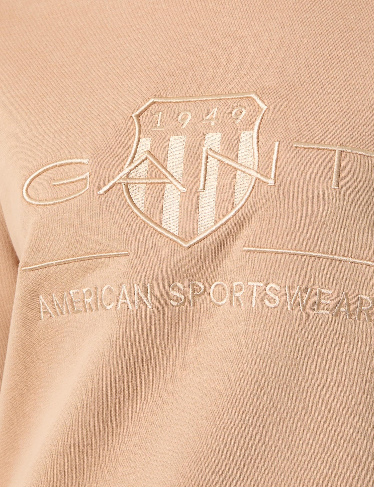 - Esta sudadera con cuello redondo cuenta con un gráfico GANT en relieve y tonal bordado en el pecho