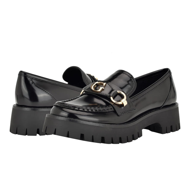 - Recoge cualquier look con estos mocasines de piel sintética pulidos con acento de hardware G y suela de goma