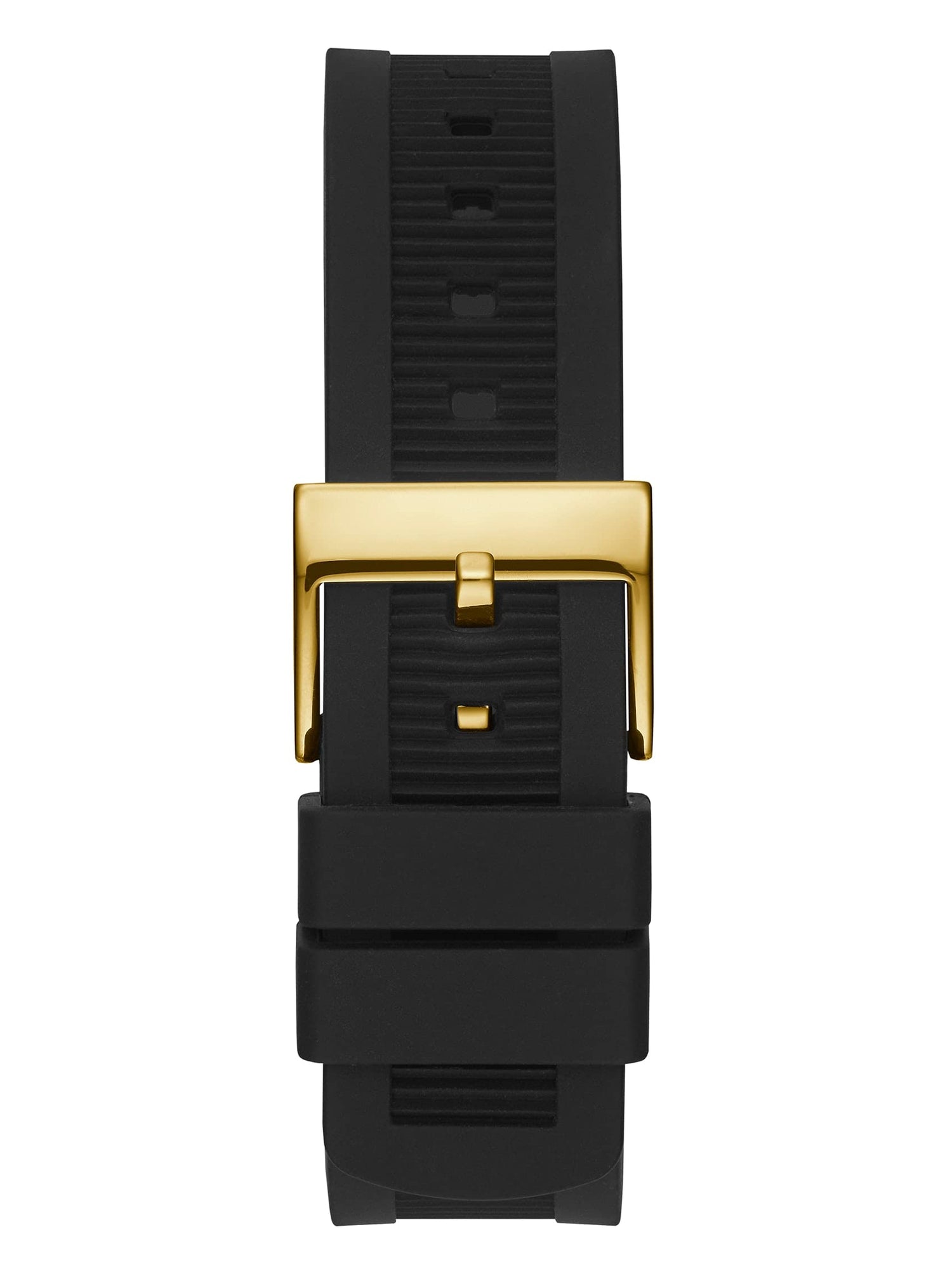 Actualiza tu accesorio básico con este reloj con una moderna esfera digital y botones multifuncionales en la caja redonda dorada. Completado con una correa de silicona negra.