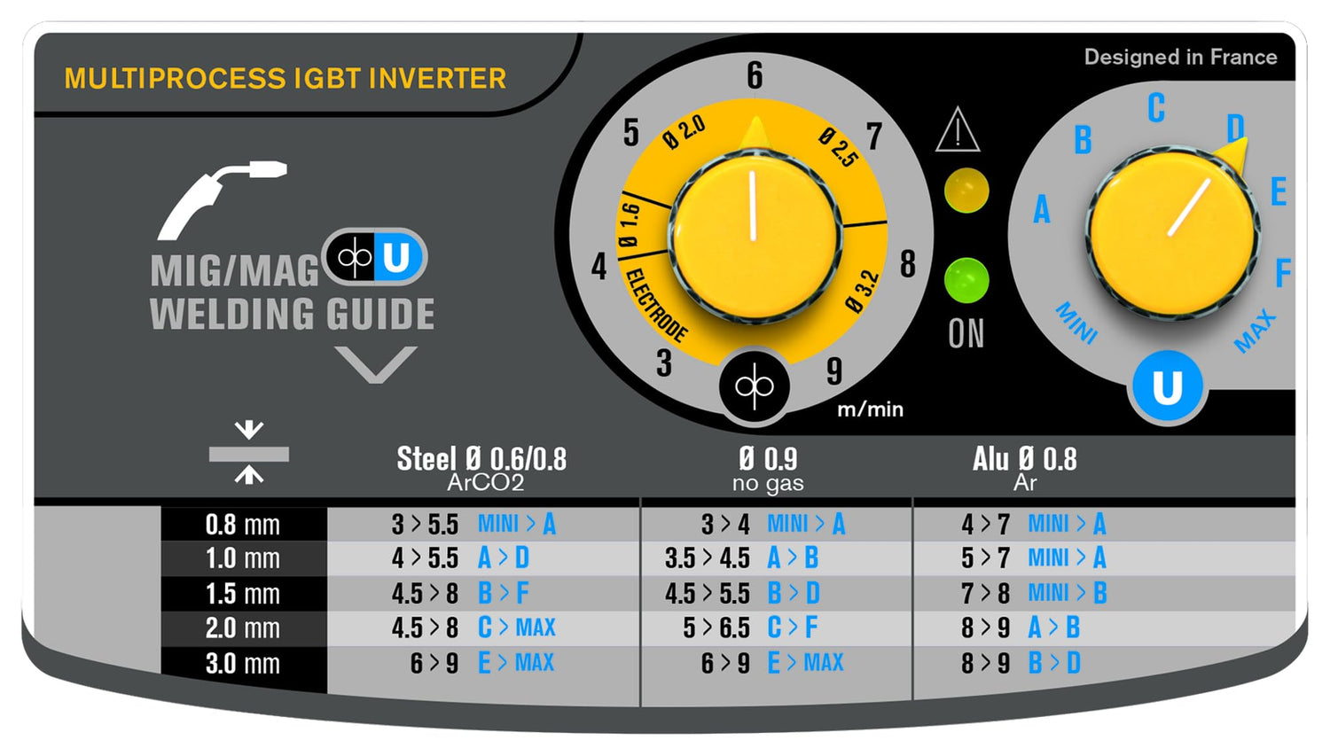 • Tecnología inverter 3 en 1: MIG-MAG GAS, MIG-MAG NO GAS, MMA