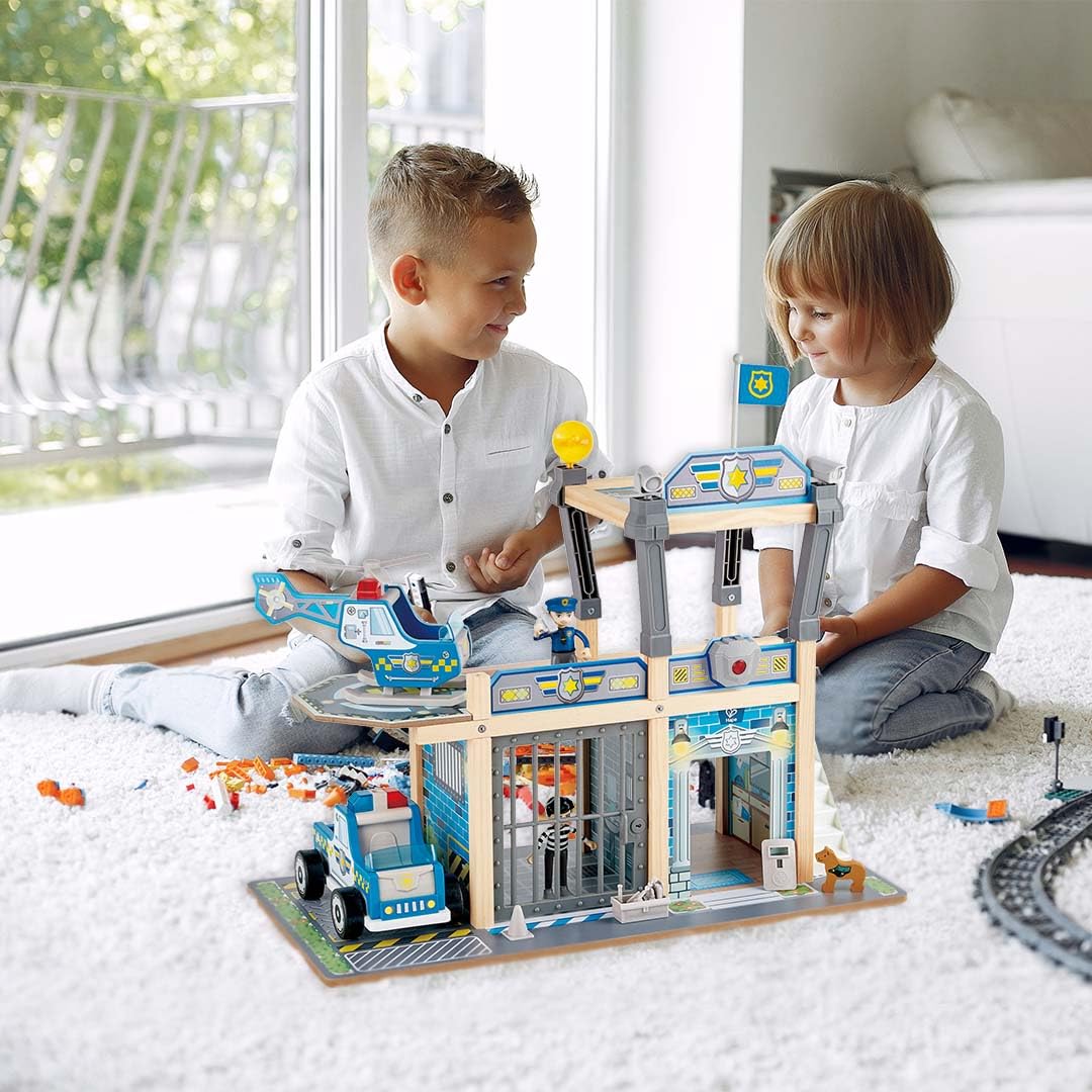 Que levante la mano quien quiera pasar las horas jugando a policías y ladrones. Este set viene con un montón de detalles y accesorios como un helicóptero, un coche de policía, un agente de policía, un prisionero e incluso un perro policía. Es óptimo para que los niños y niñasse animen a inventar sus propias historias de policías y ladrones, y aprendan más sobre lo que está bien y mal.
