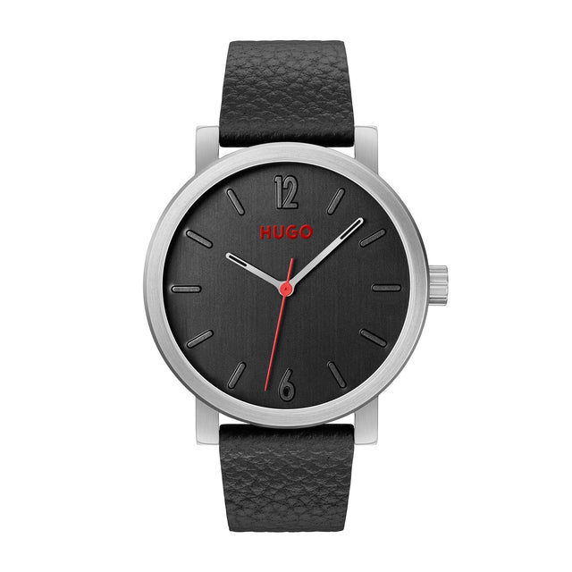 HUGO Reloj Analógico de Cuarzo para Hombre Colección #RASE con Correa de Cuero Negra - 1530115