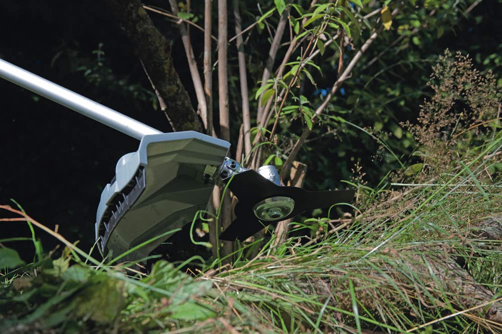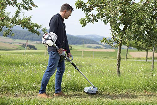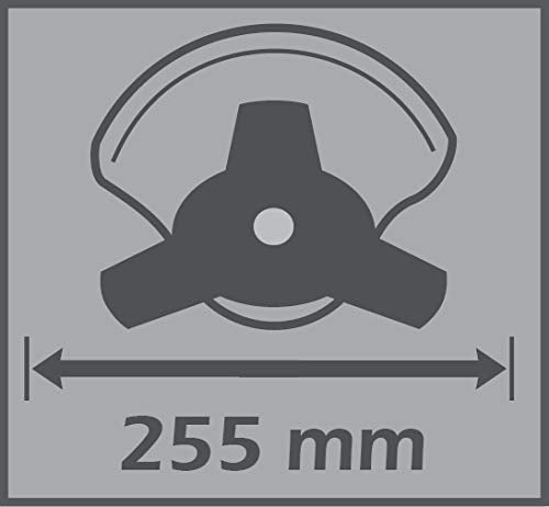 - recortabordes: bobina semi-automático, largo de corte hilo 43 cm, cabezal de corte innovador con protección contra bobinado de hierbas / desbrozadora: disco de 3 puntas, largo de corte cuchilla: 25,5 cm