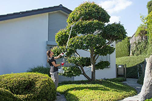 - tijeras cortasetos telescópico: dispositivio para setos con regulación gradual de 12-posiciones hasta 170°, cuchilla para setos endurecida de alta precisión, con sistema de corte opuesto, longitud de corte 40 cm, apertura 24 mm