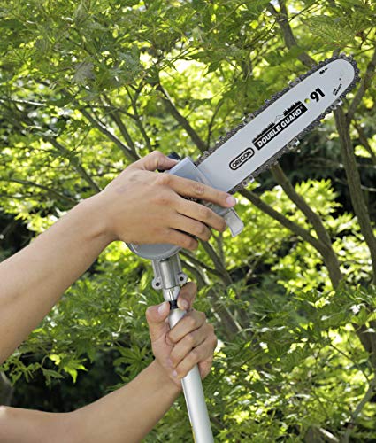 - motosierra telescópica: dispositivio para poda con regulación gradual en 7-posicions hasta 90°, cadena antivibración oregon (91p040x), longitud de corte 24 cm, extensión para poda de 76 cm, lubricación automática de cadena con indicación de nivel de aceite