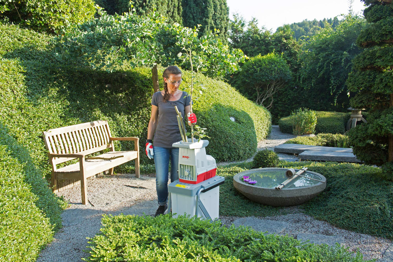 IKRA trituradora silenciosa eléctrica ILH 3000 A, diámetro de ramas a 44mm, 3000W de potente, incl. gafas de seguridad