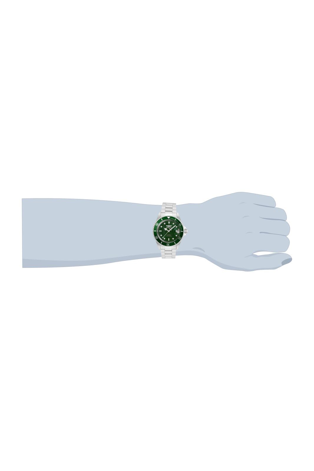 - El Invicta 35688 tiene una caja de acero inoxidable de 40 millimetros con una esfera verde