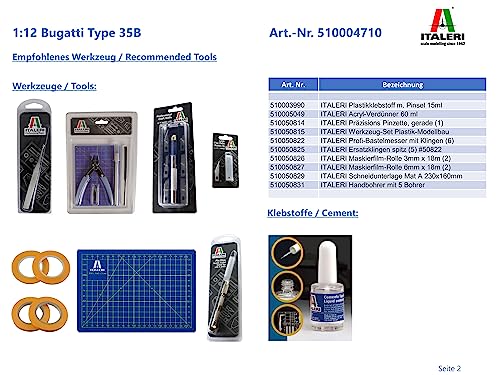 Italeri 4710S 1:12 Bugatti Type 35B - modelismo, Kit, Modelo de Suelo, Hobby, Pegar, Kit de plástico, detallado, sin Pintar is backordered and will ship as soon as it is back in stock.