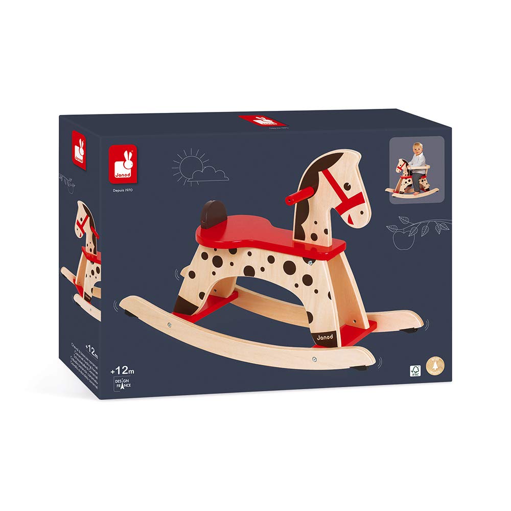 Janod - Caballito de Madera Caramel - Juguete para Primeros Años - Aprendizaje del Equilibrio - Desde 1 año, J05984, Marrón y Rojo