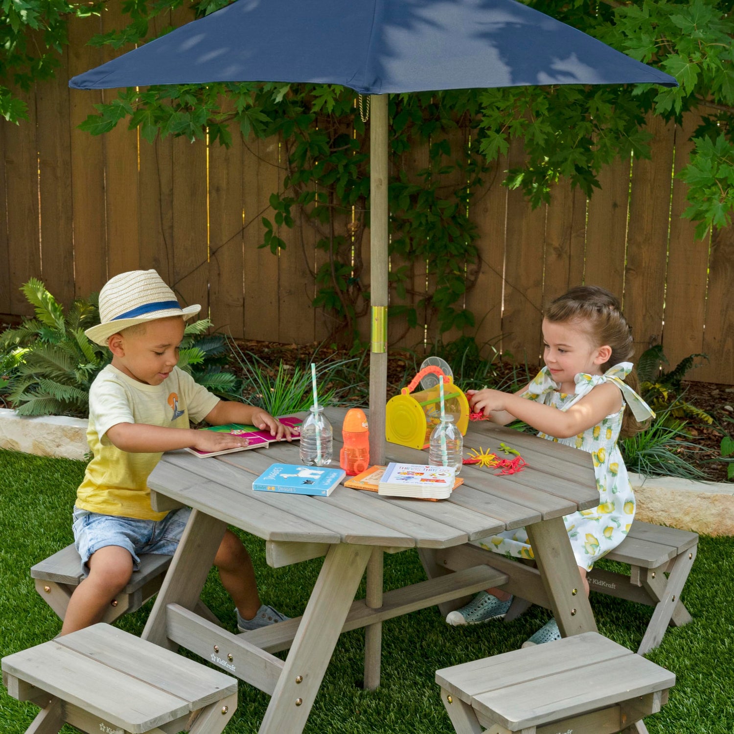 KidKraft Octagon Conjunto jardín de Mesa, taburetes y sombrilla de Madera para niños, Mesa y sillas jardín, Patio, terrazza, Muebles Exteriores al Aire Libre (20176), Exclusivo en Amazon