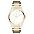 - Carcasa de acero inoxidable bicolor plateado/dorado parcialmente mate, diámetro de 38 mm; cristal mineral resistente a los arañazos, resistencia al agua probada hasta 5 bar/ATM