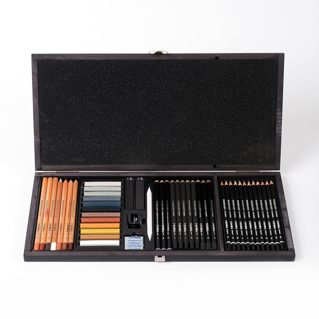 - Set de dibujo con una selección equilibrada de lápices de dibujo monocromos