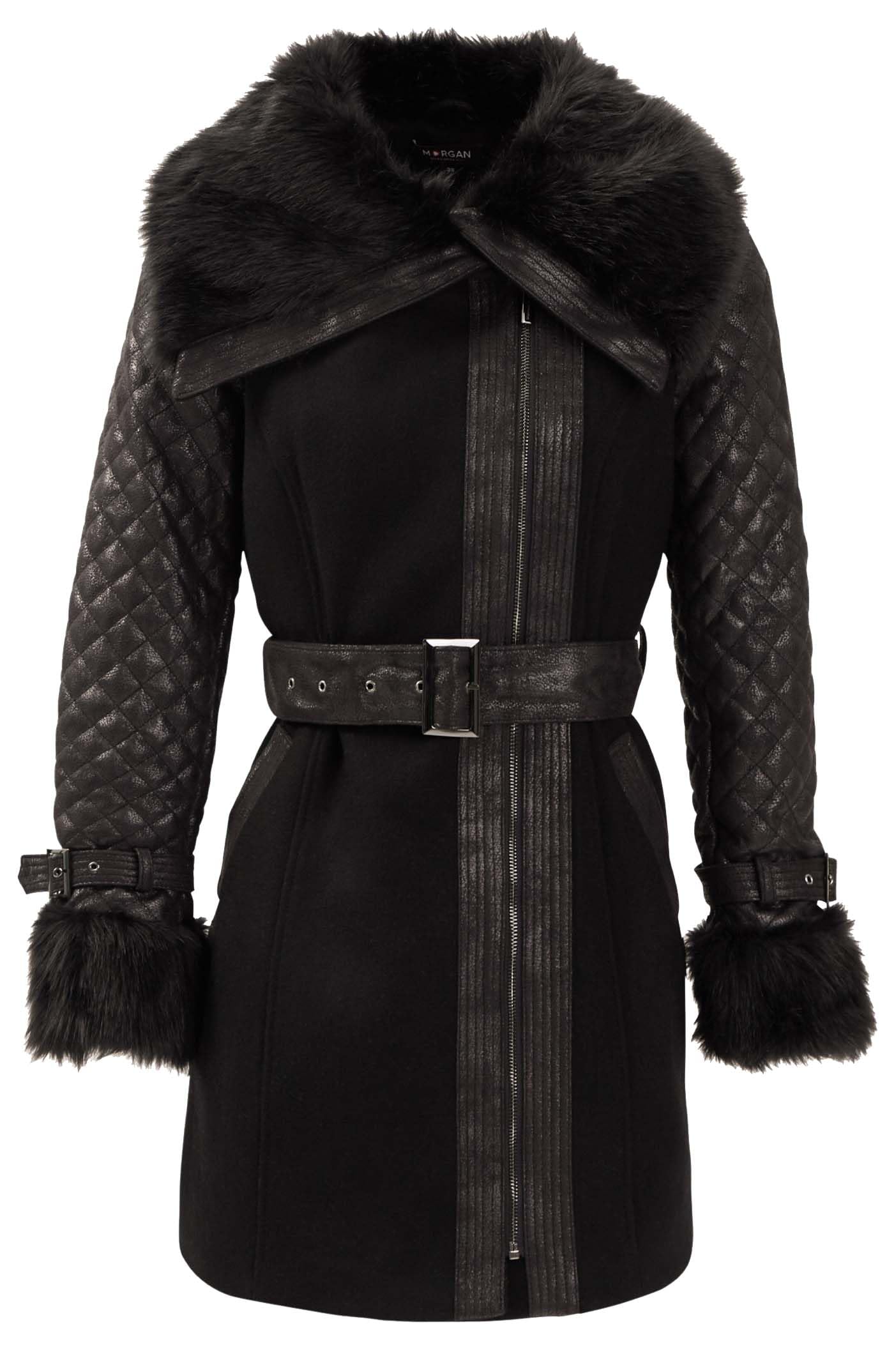 Morgan Abrigo recto con cinturón y piel Negro 36